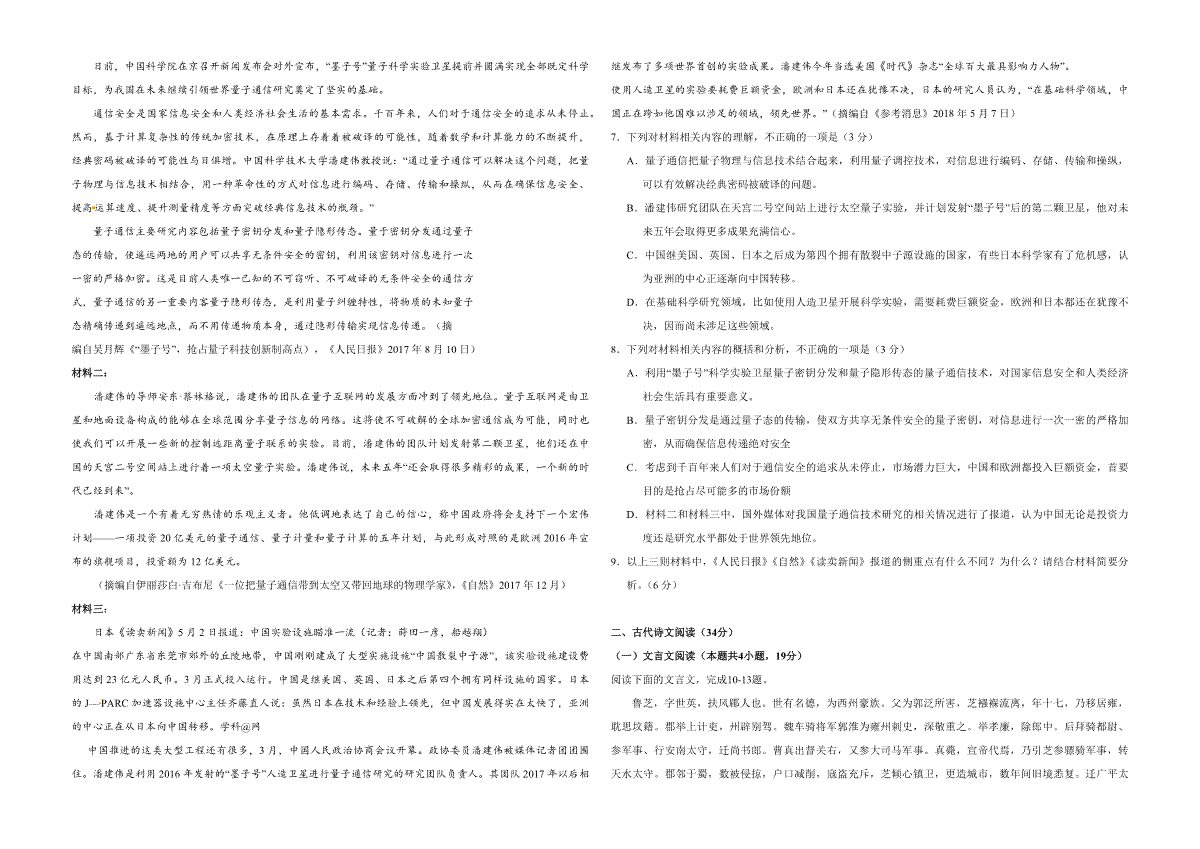 当前位置:首页 > 高中试卷 > 2018年广东高考语文(原卷版)