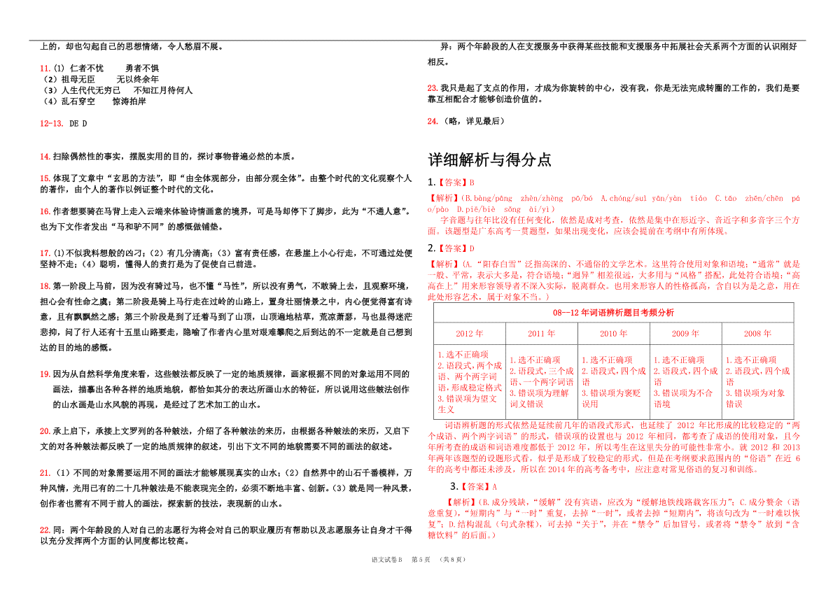 下载2013年广东高考语文试题及答案PDF格式或doc
