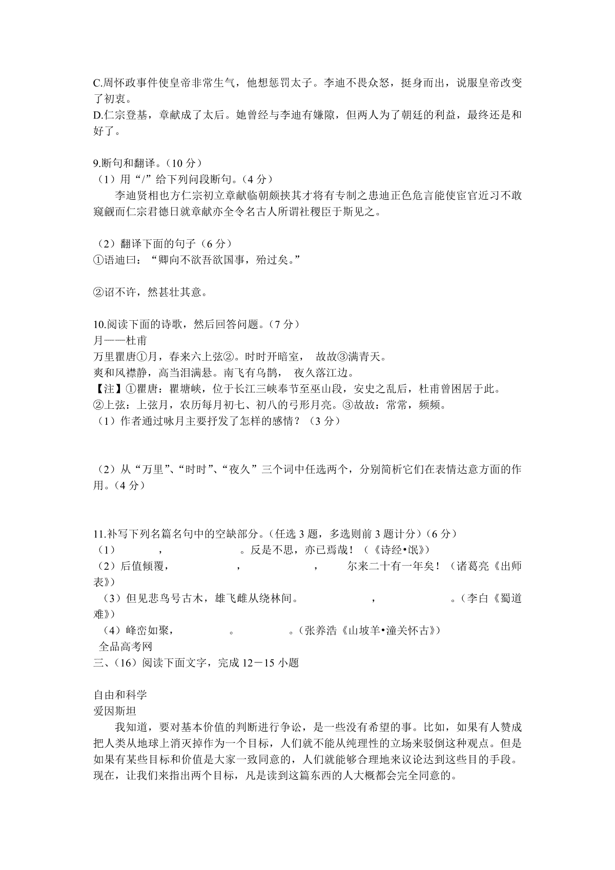 当前位置:首页 > 高中试卷 > 2009年广东高考语文(原卷版)