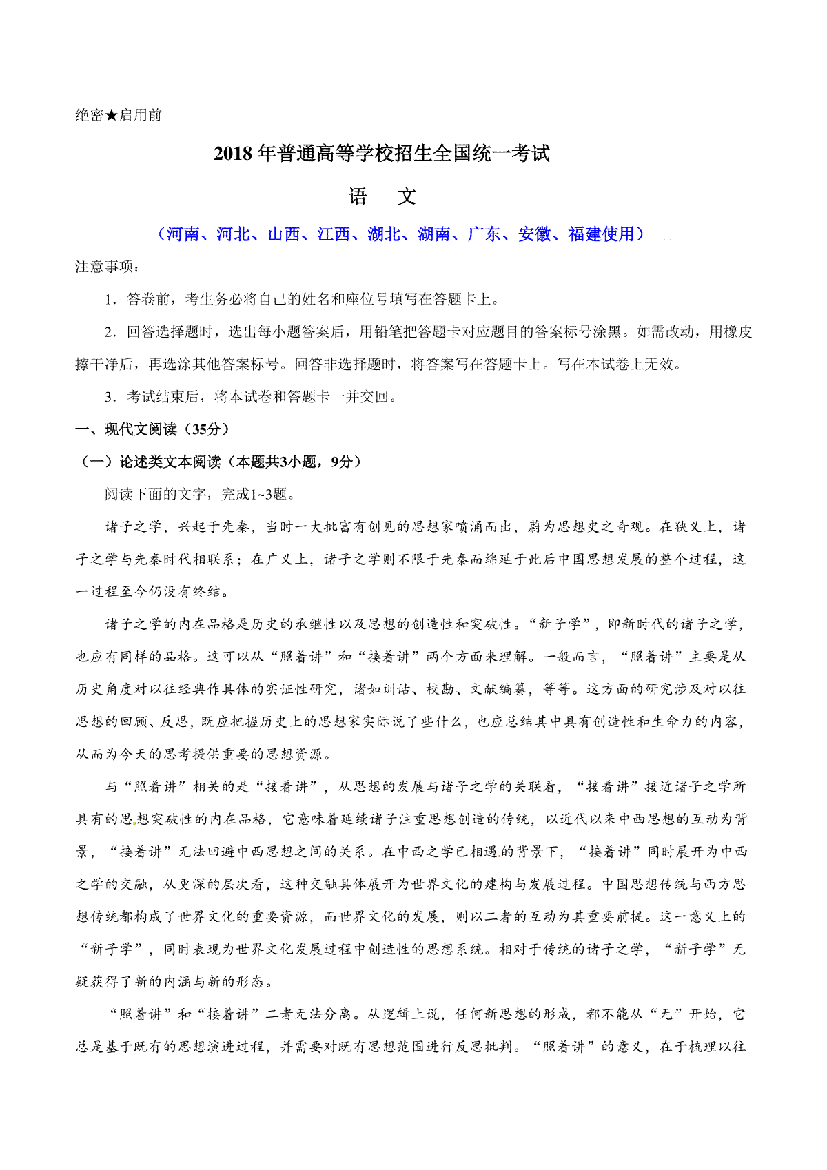 如果你想下载2018年广东高考语文试题及答案DOC或PDF版,请点击本文末链接!