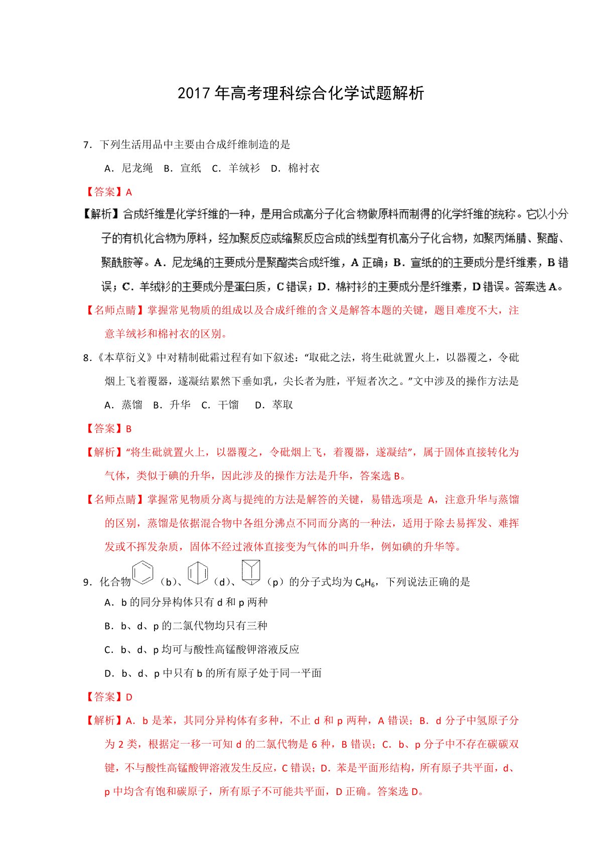 一、2017年全国Ⅰ卷高考理综真题及解析