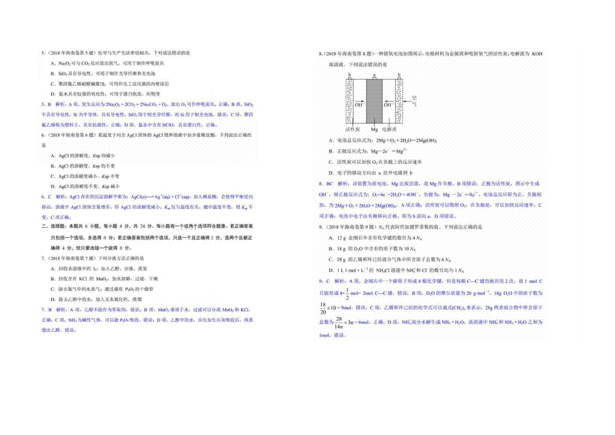 如果你想下载2018年海南高考化学试题及答案DOC或PDF版,请点击本文末链接!