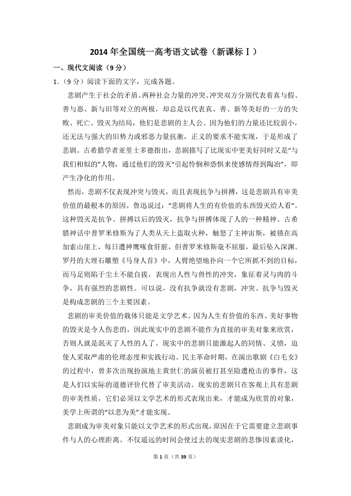 一、2014年全国统一高考语文试卷(新课标ⅰ)(含解析版)