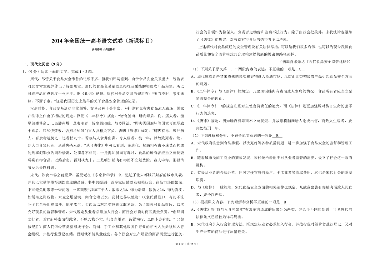 下载2014年全国统一高考语文试卷(新课标ⅱ)(含解析版)PDF格式或doc