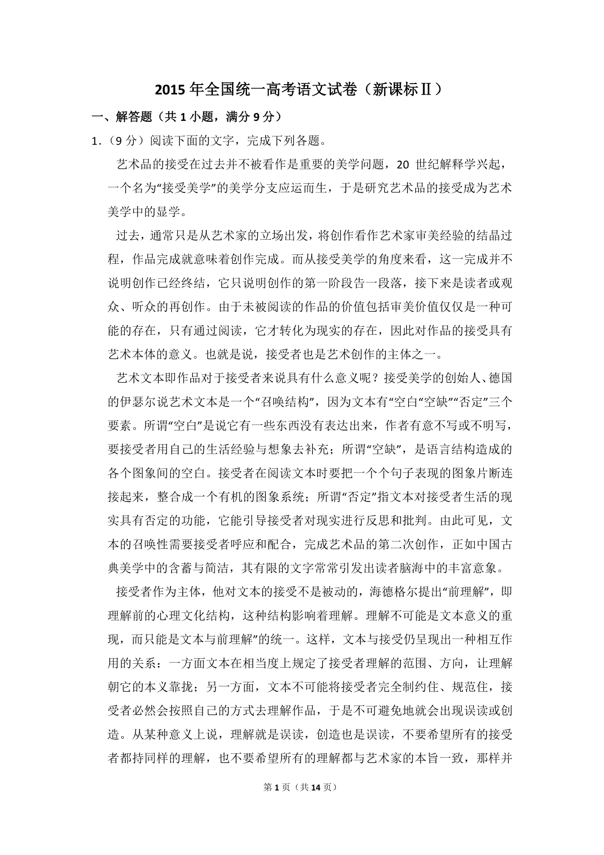 一、-2015年全国统一高考语文试卷(新课标ⅱ)(原卷版)