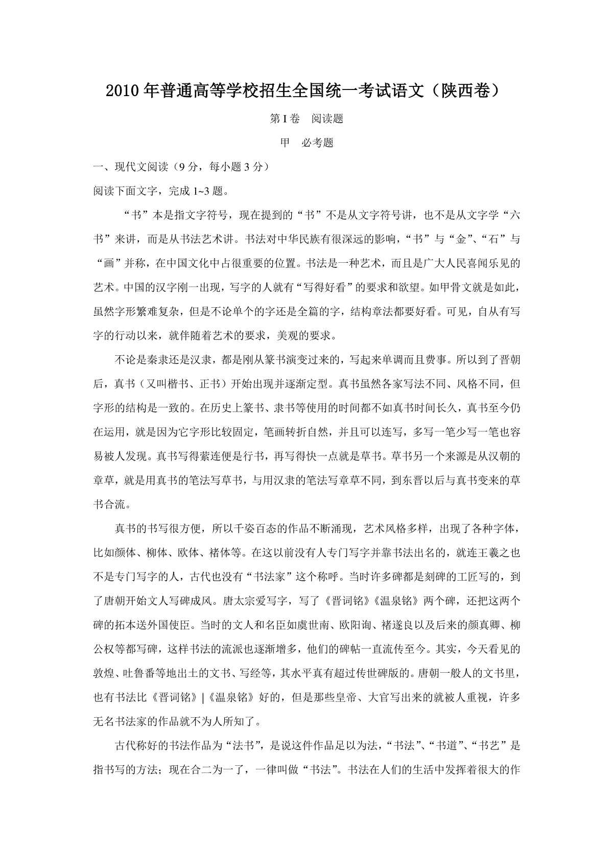 一、2010陕西省高考语文试题及答案