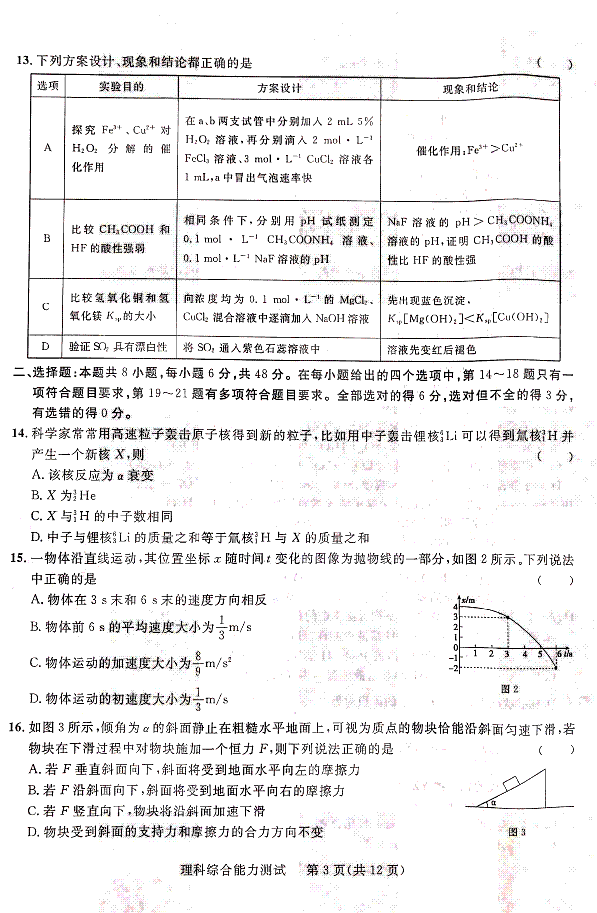 柳州高中南宁三中高三(4月)联考理科综合试卷于近期开考,本次考试对考生对知识的掌握参考价值大,为了方便大家复习掌握错题!小编在下文为大家准备了柳州高中南宁三中高三(4月)联考理科综合试卷试卷及答案解析详情,仅供考生参考。