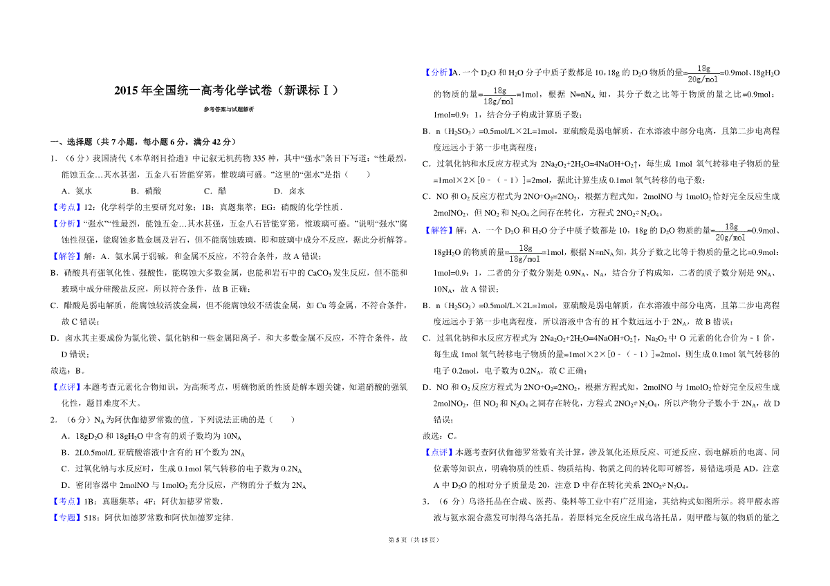 2015年全国统一高考化学试卷(新课标ⅰ)(含解析版)