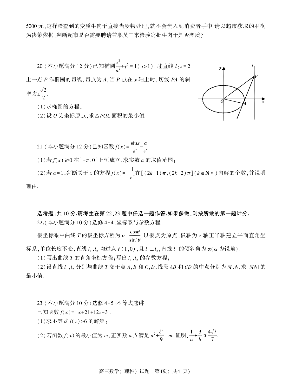 一、2023年河南省五市高三第一次联合调研检测数学(理)