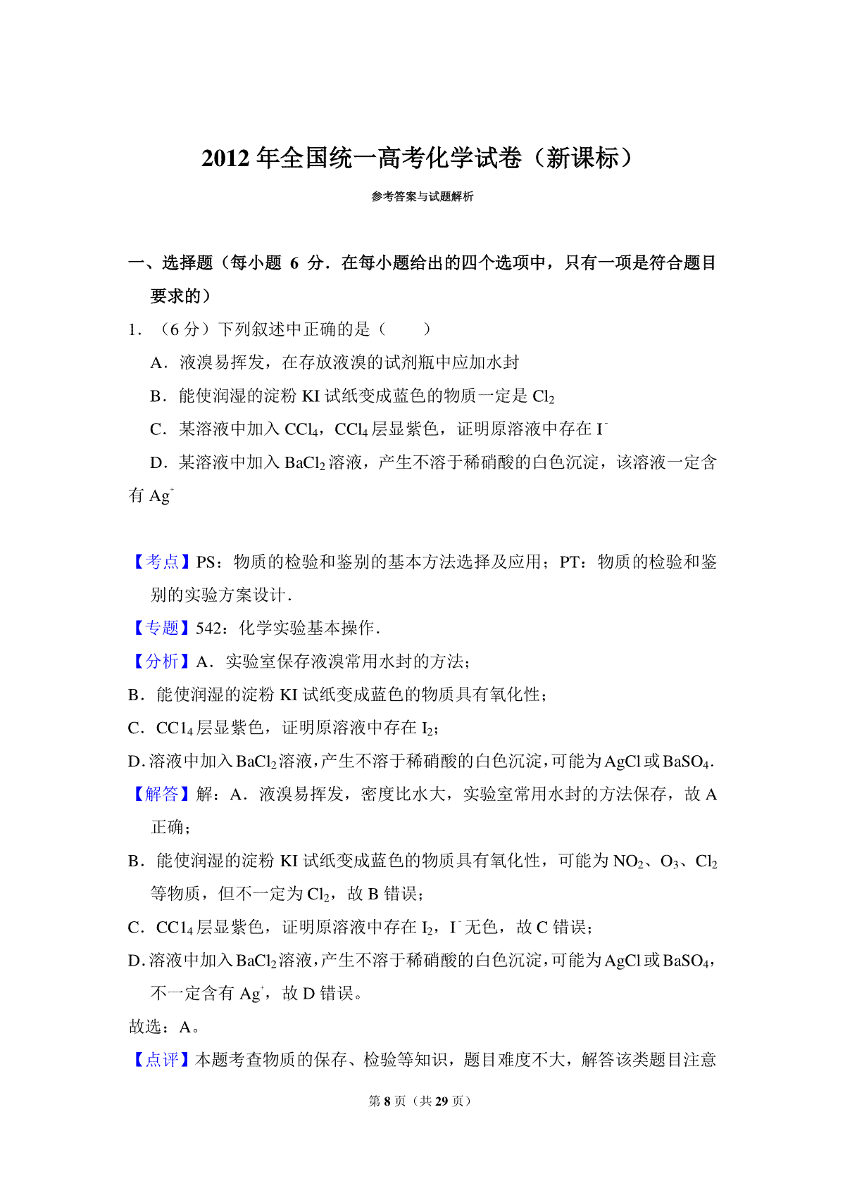 如果你想下载2012年全国统一高考化学试卷(新课标)(含解析版)DOC或PDF版,请点击本文末链接!