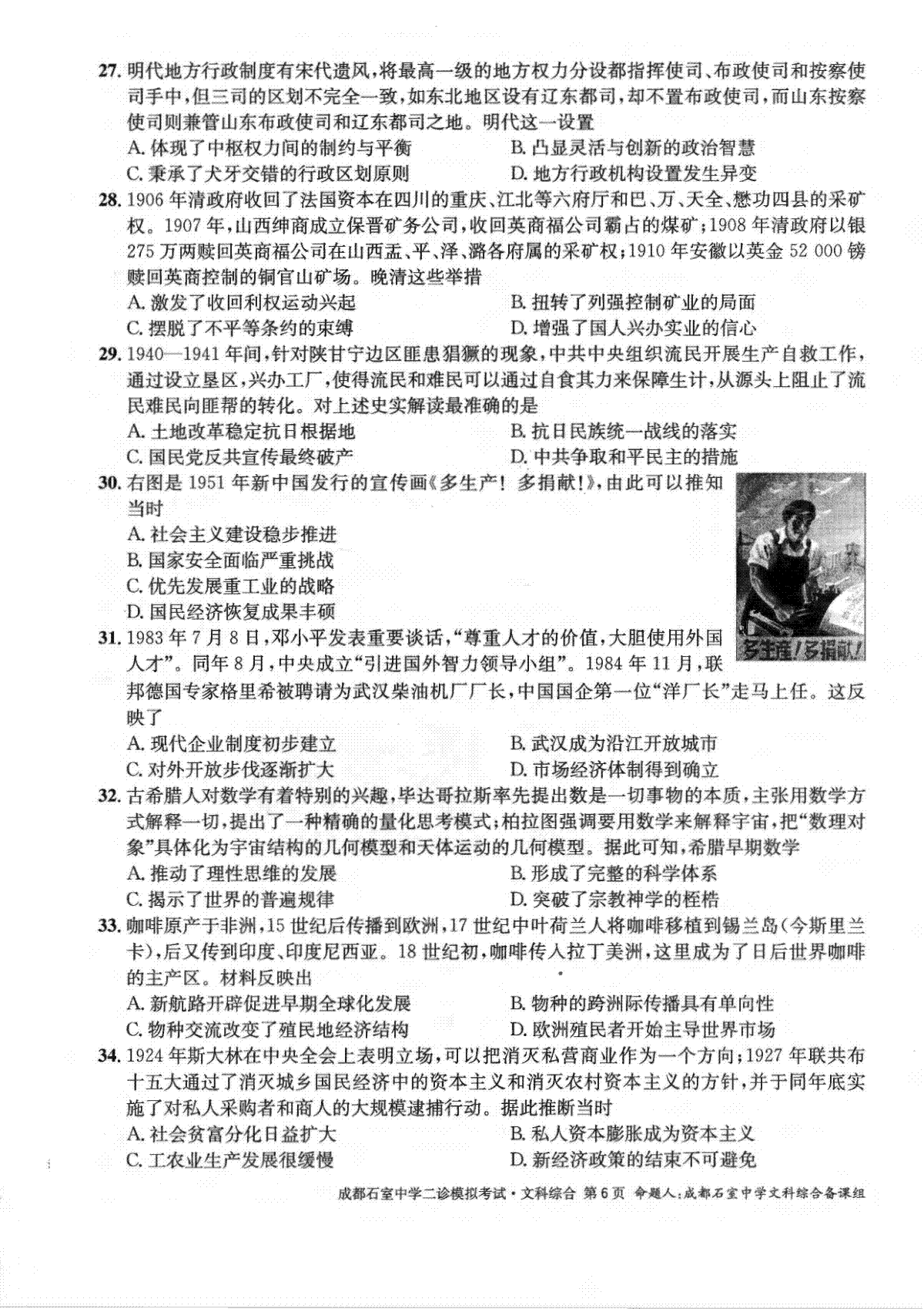 如果你想下载2023届四川省成都市石室中学高三下学期二诊模拟文科综合试题DOC或PDF版,请点击本文末链接!
