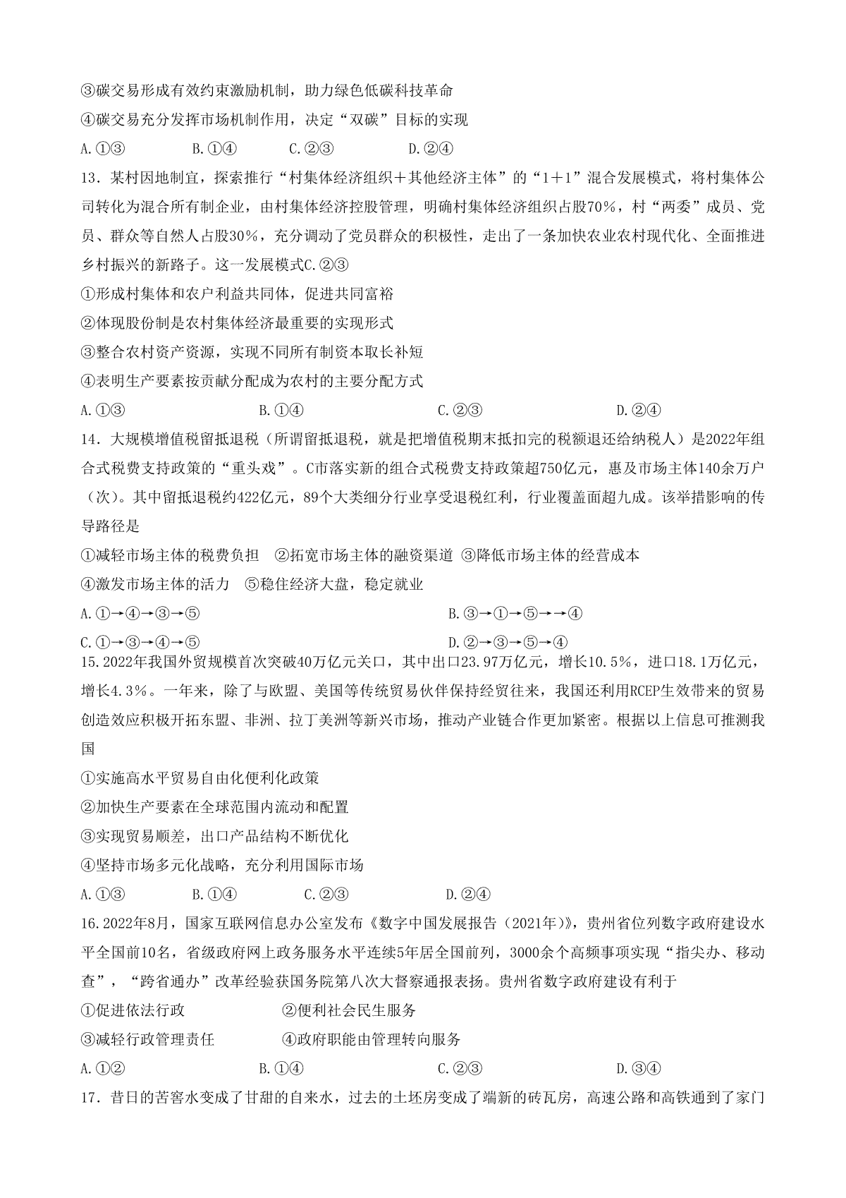 一、贵州省六校联盟2022-2023学年高三下学期适应性考试(三)文综试卷