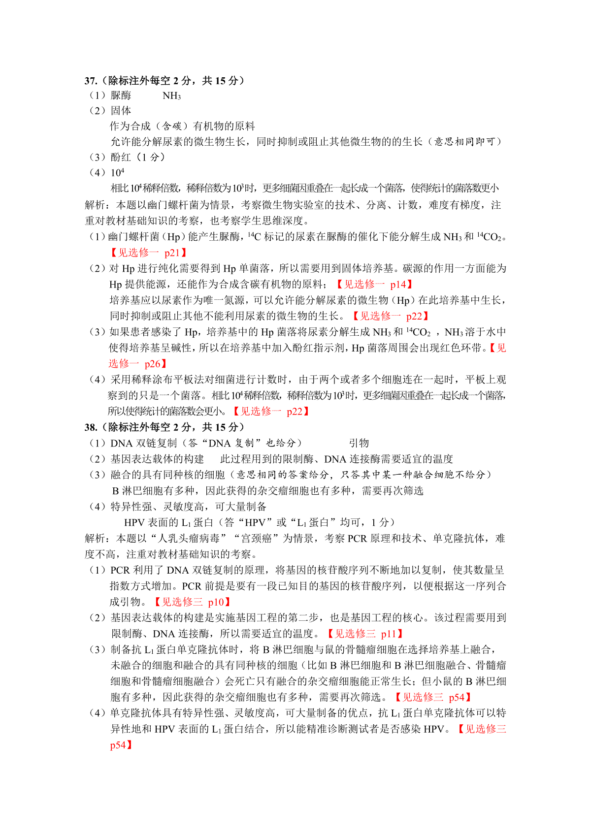 一、江西省赣州市2023届高三年级(一模)理综生物参考答案(含解析)