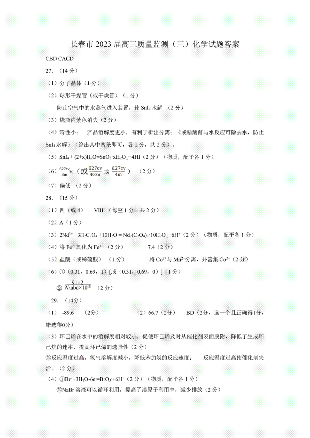 下载2023吉林长春三模理综答案PDF格式或doc