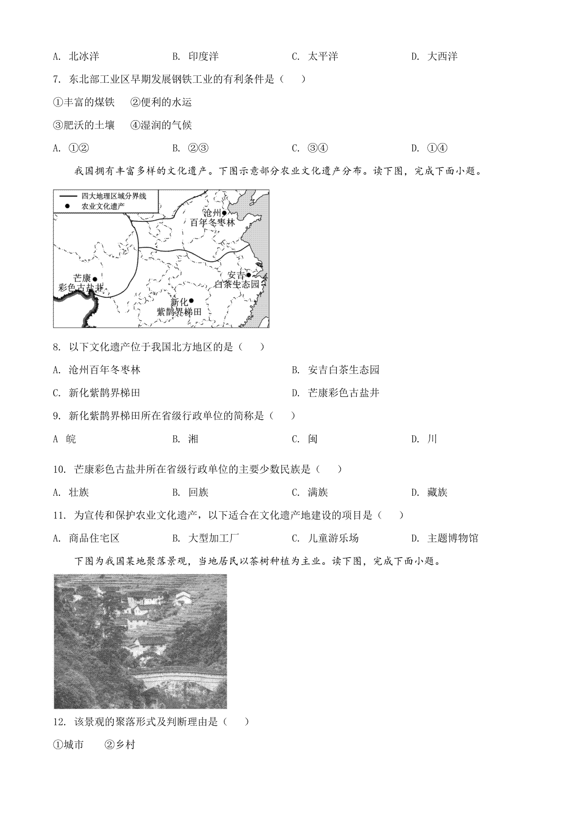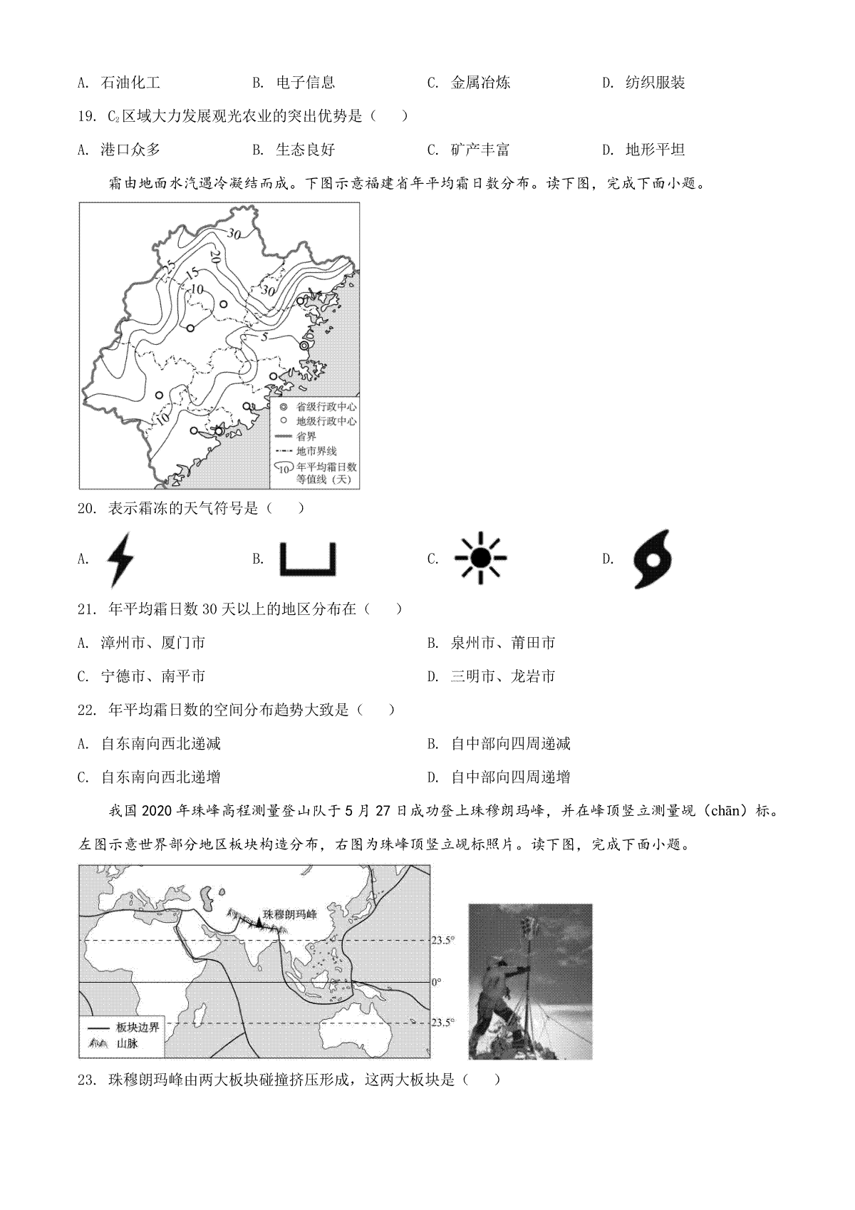 一、精品解析:福建省2020年中考地理试题(原卷版)