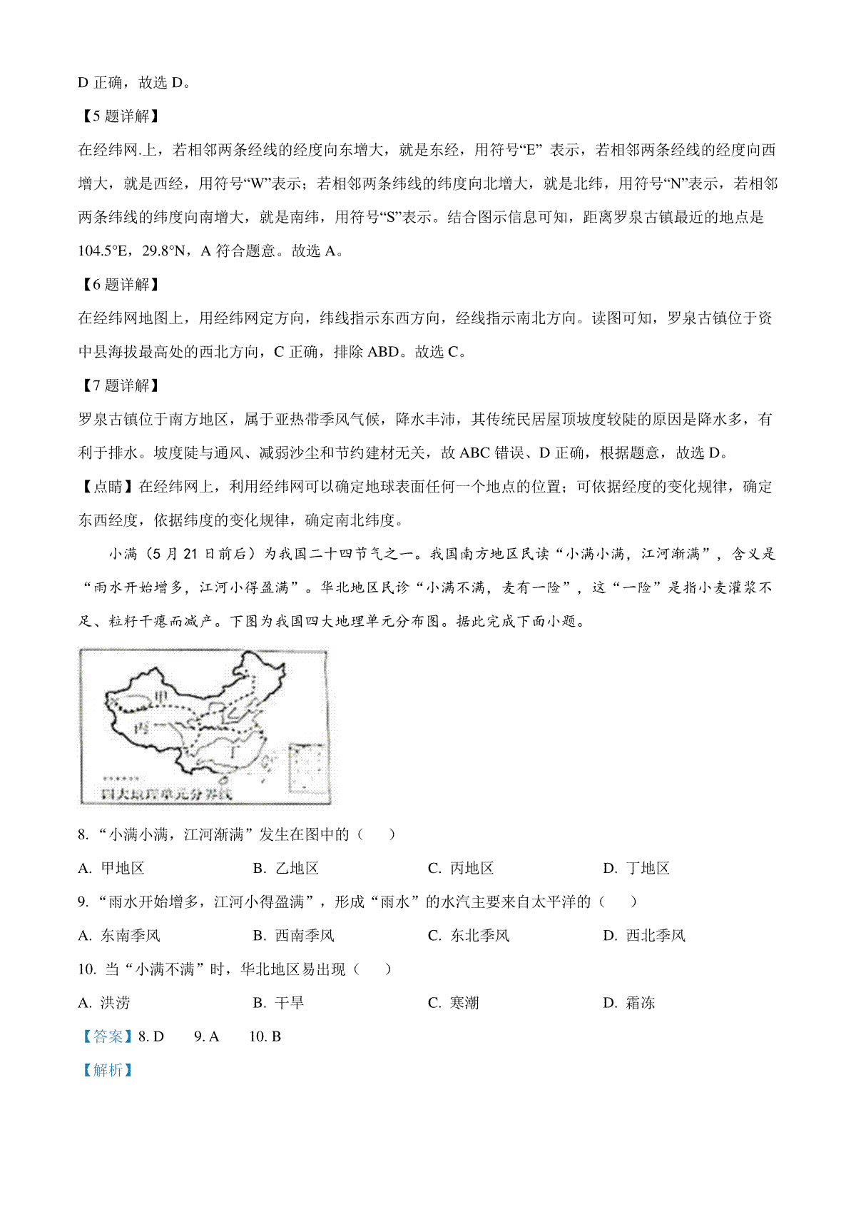 一、精品解析:2022年四川省内江市中考地理真题(解析版)