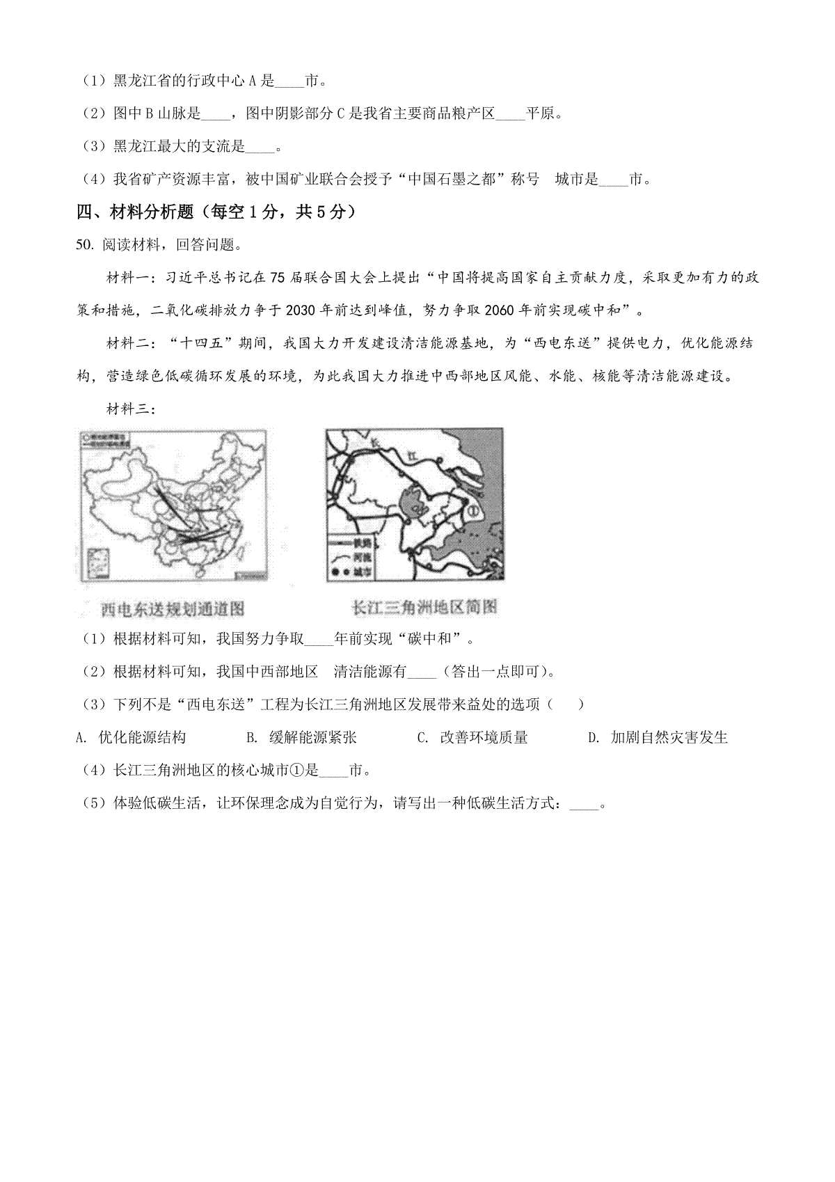 一、精品解析:2022年黑龙江省龙东地区中考地理真题(原卷版)