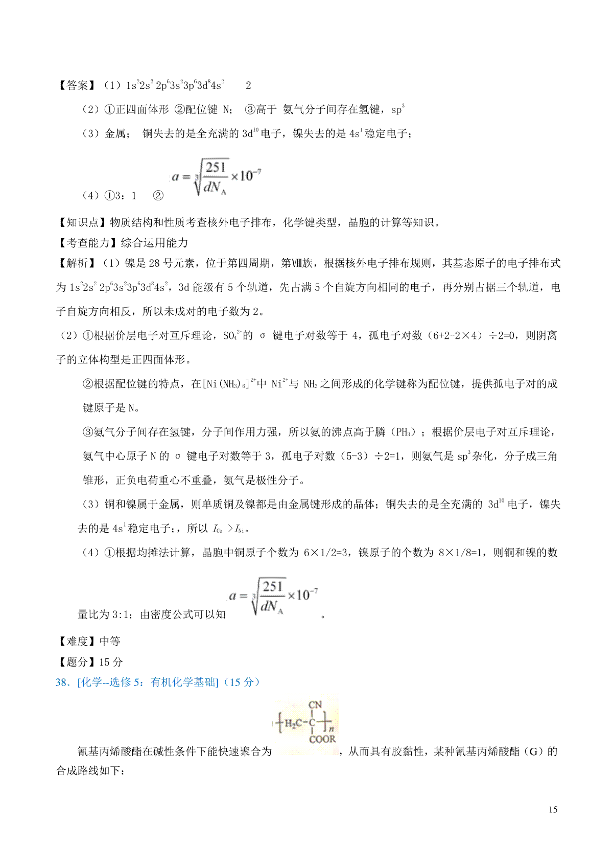 一、2016年普通高等学校招生全国统一考试【陕西化学真题+答案】