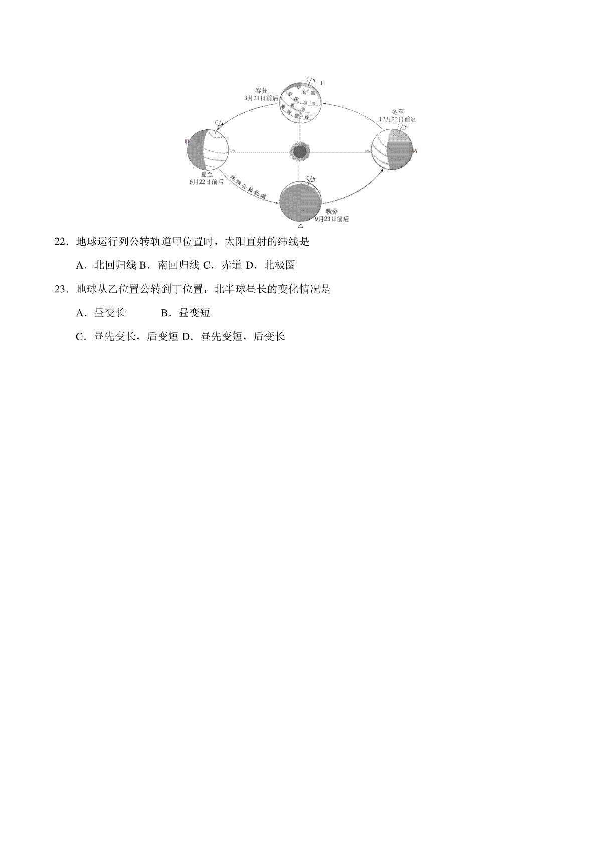 一、专题02 地球的运动(第01期)-2019年中考真题地理试题分项汇编(原卷版)