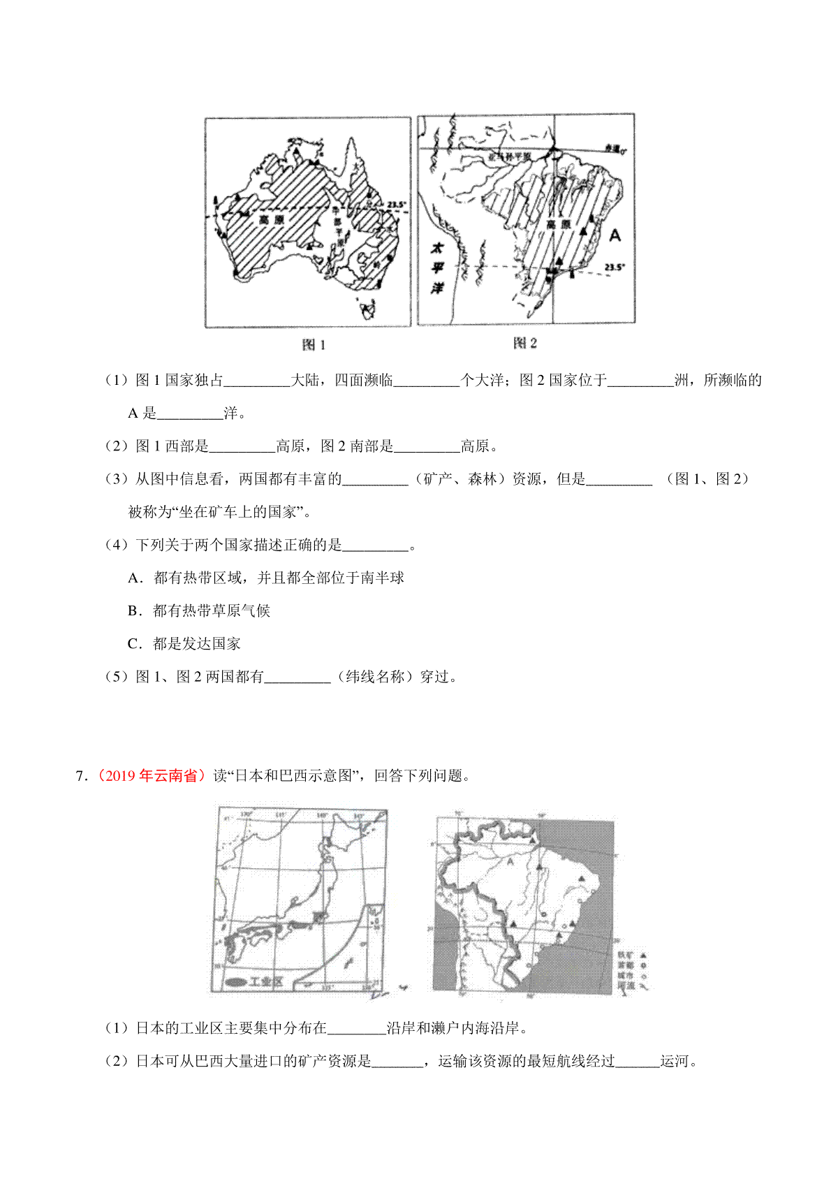 一、专题12 西半球的国家(第01期)-2019年中考真题地理试题分项汇编(原卷版)