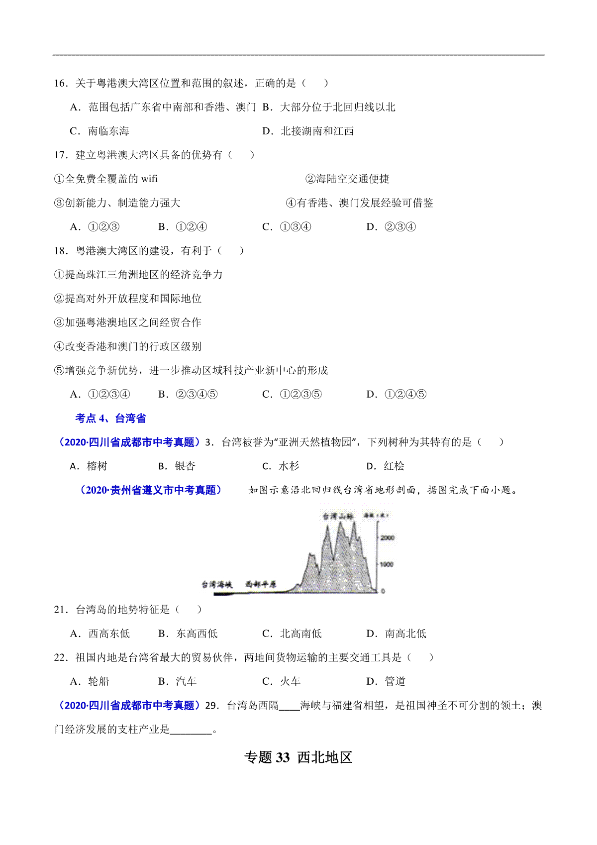 如果你想下载2020年中考真题地理试题分项汇编(全国版)(三)中国地理分区(第01期)(原卷版)DOC或PDF版,请点击本文末链接!