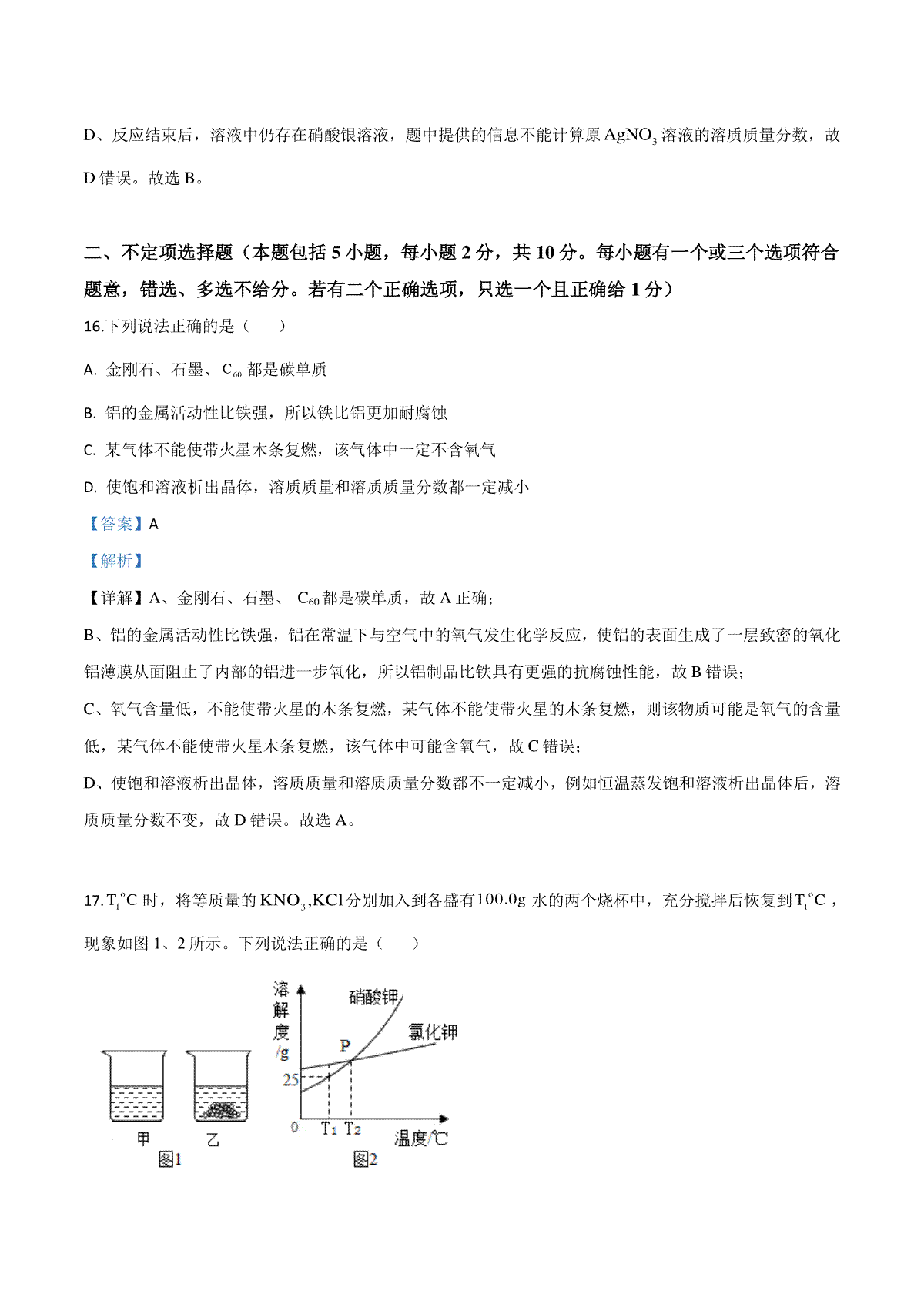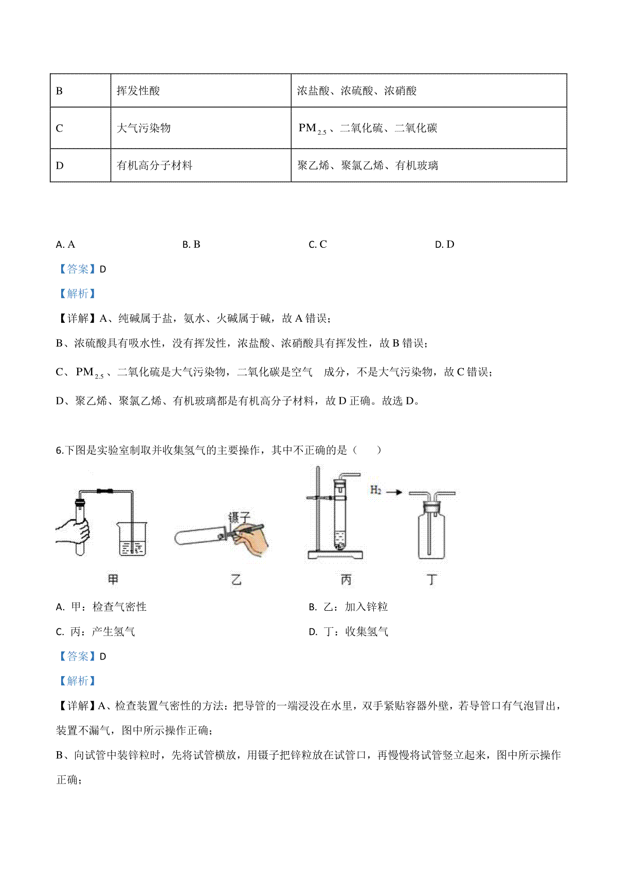 一、精品解析:江苏省镇江市2019年中考化学试题(解析版)
