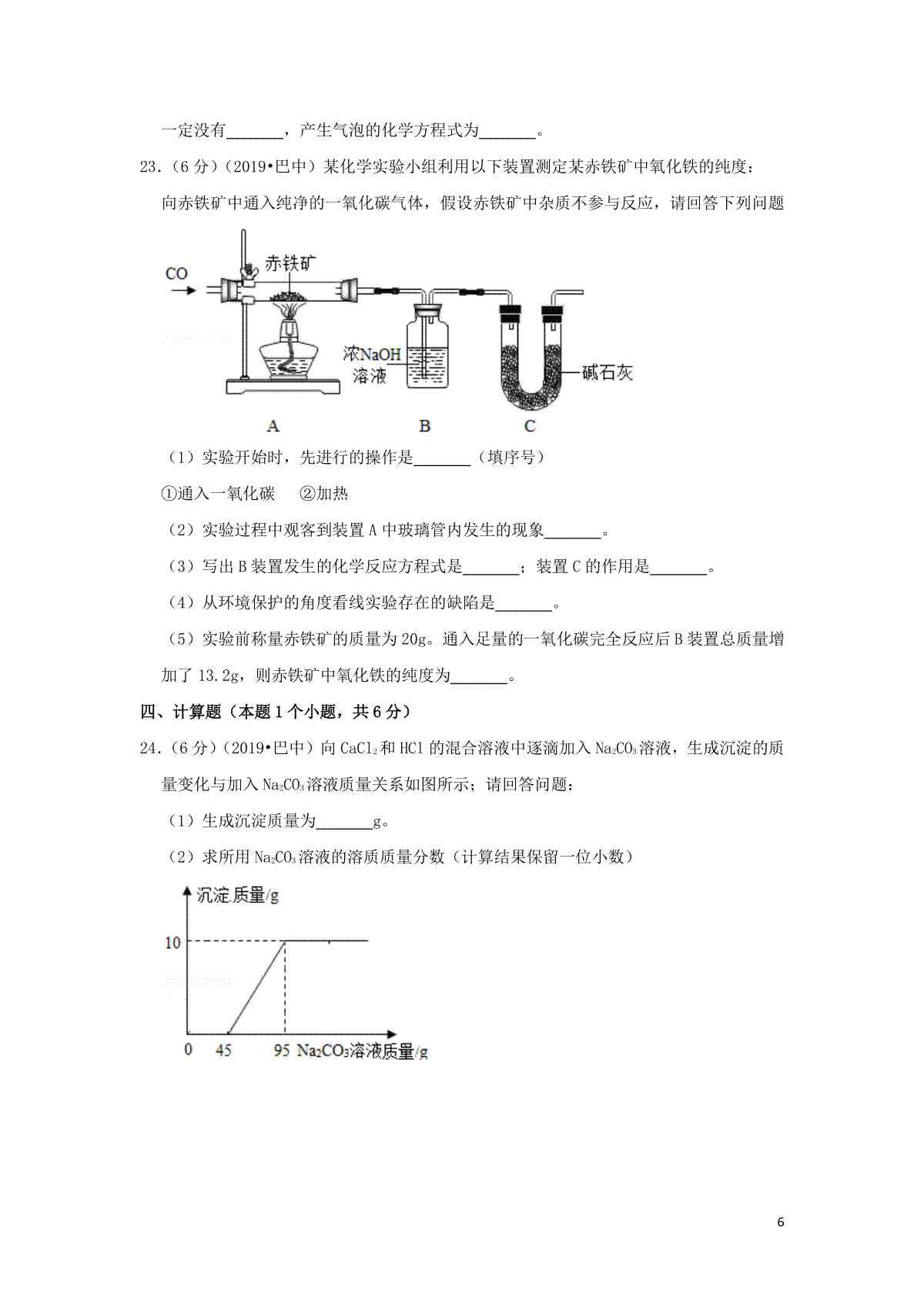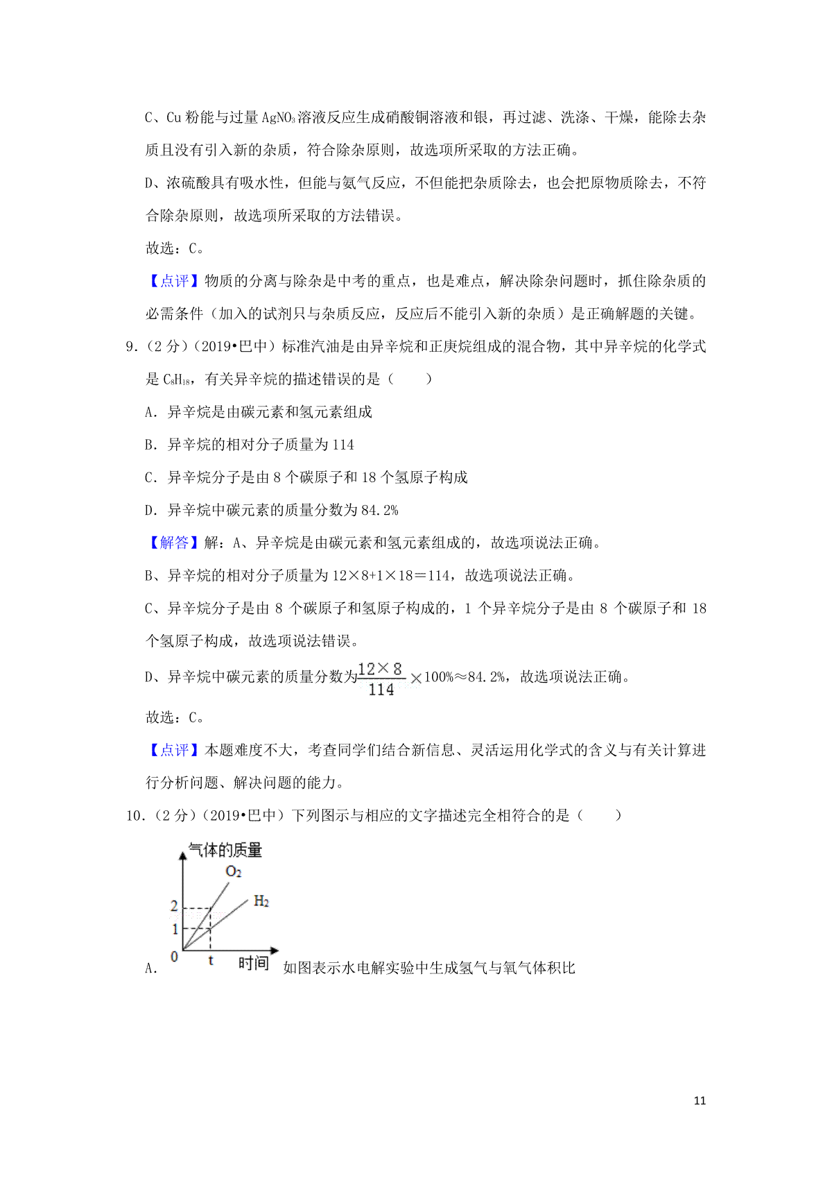 一、四川省巴中市2019年中考化学真题试题(含解析)