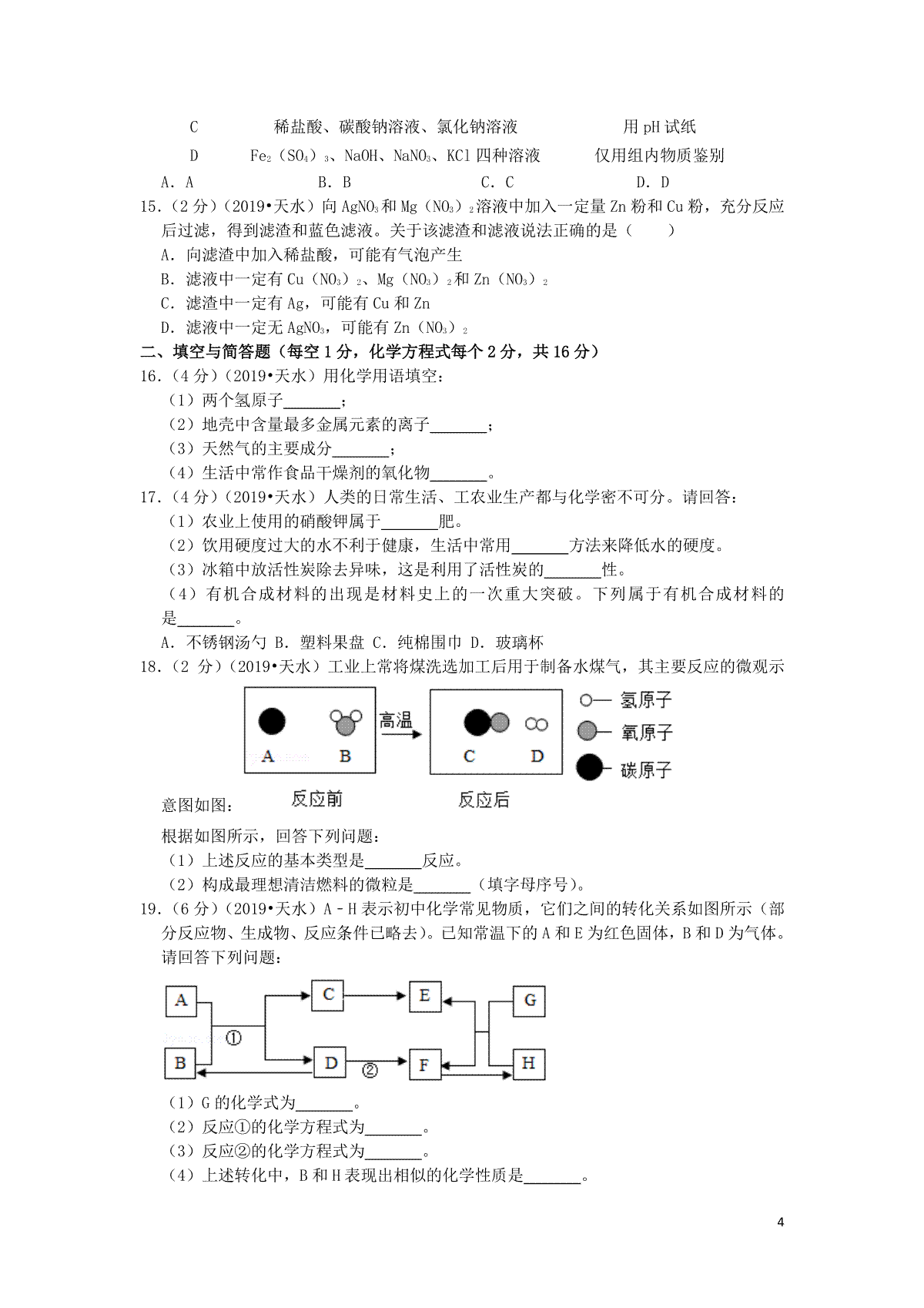 一、甘肃省天水市2019年中考化学真题试题(含解析)