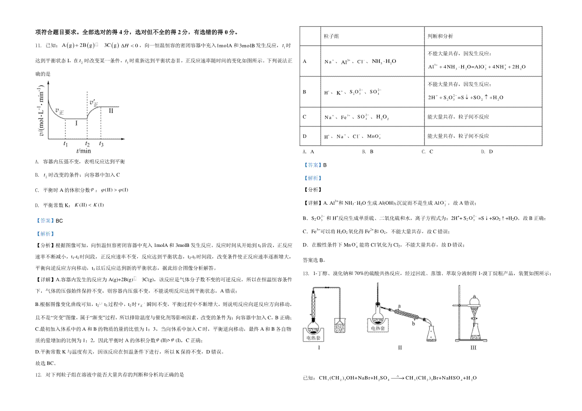 一、2021年湖南省普通高中学业水平选择性考试化学试题(湖南卷)(解析版)A3