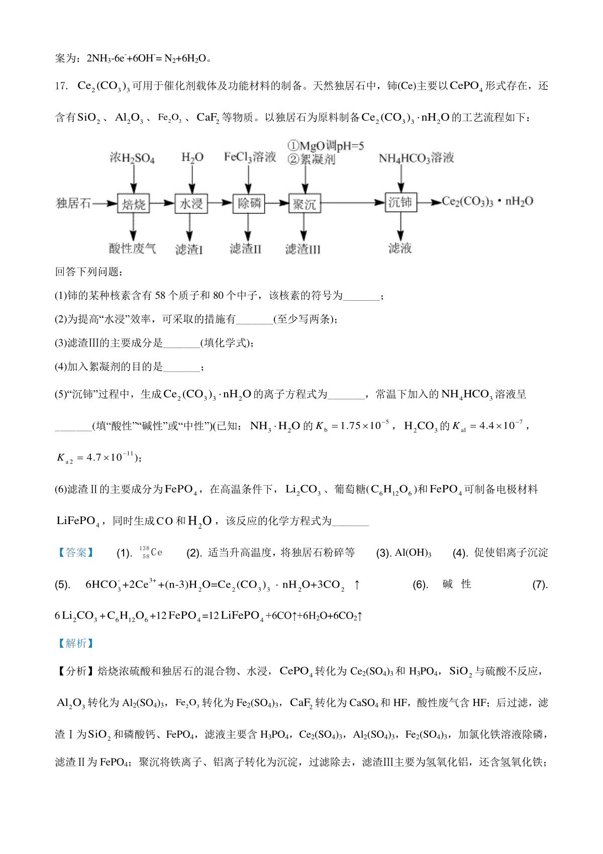 一、2021年湖南省普通高中学业水平选择性考试化学试题(湖南卷)(解析版)