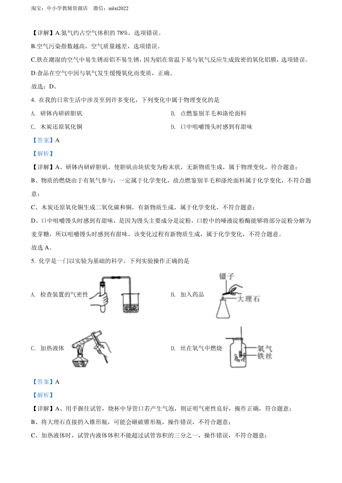 一、精品解析:2022年四川省眉州市中考化学真题(解析版)