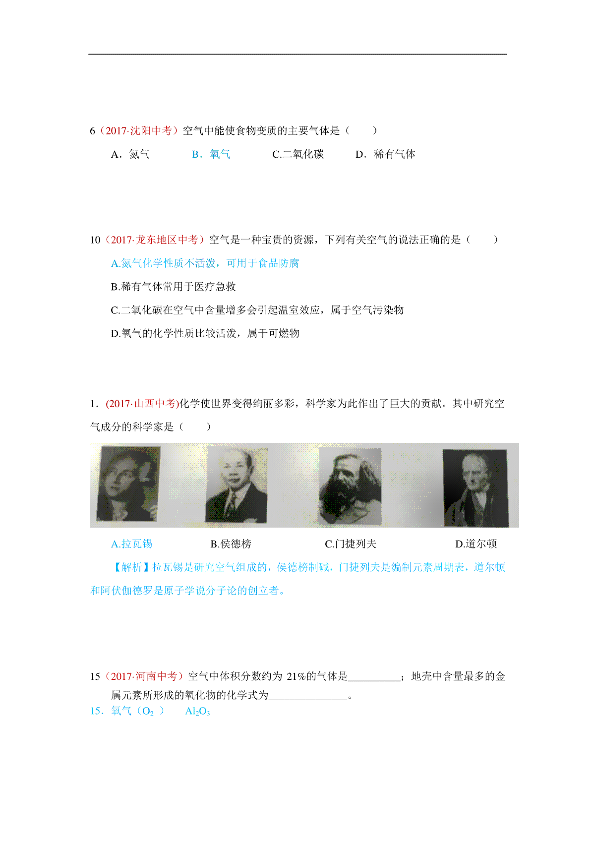 一、1.空气、氧气的性质