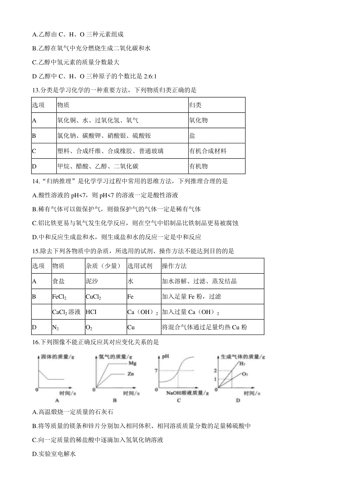 一、2020年山东省聊城市中考化学试卷及答案