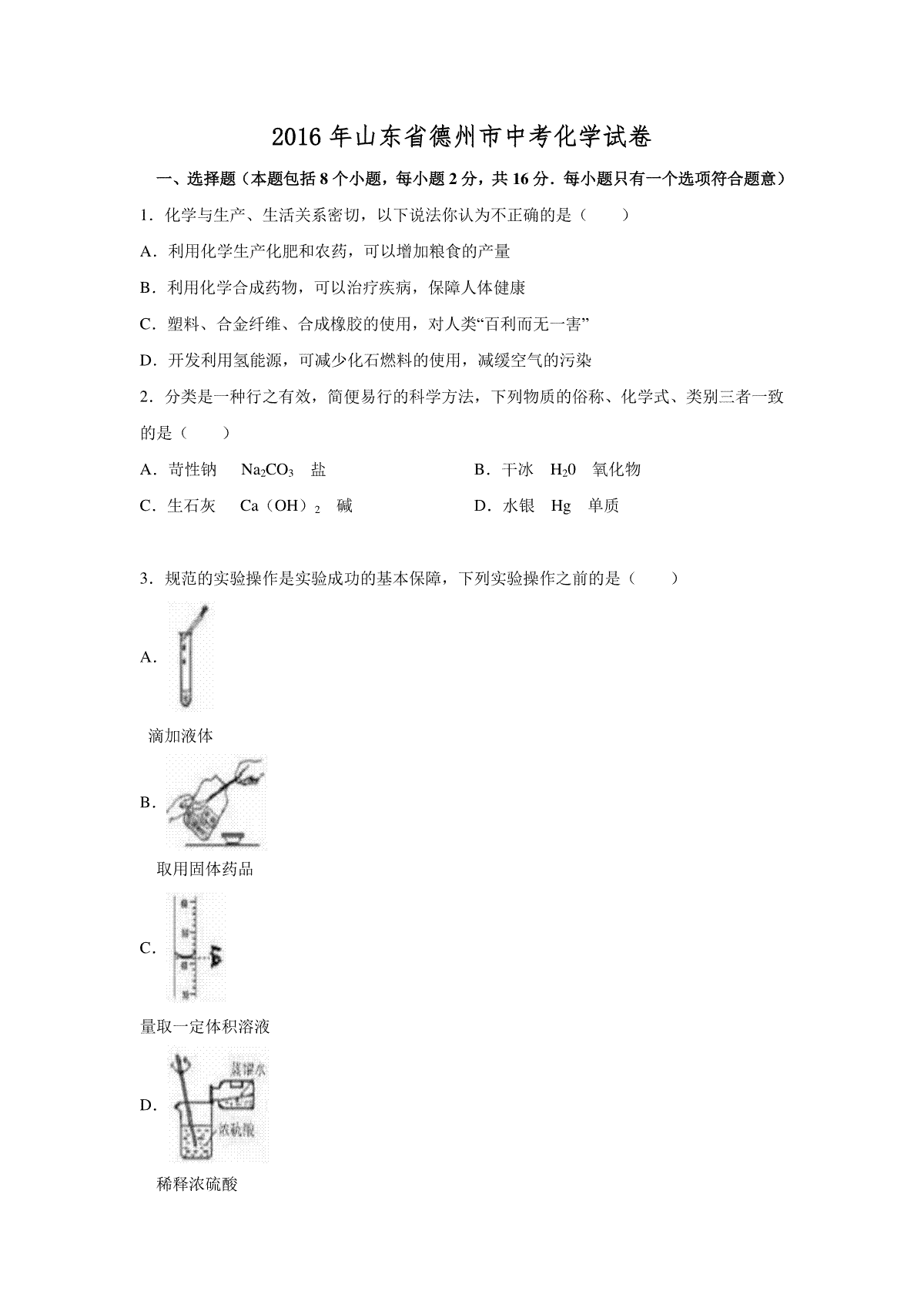 下载2016年德州市中考化学试卷及答案PDF格式或doc