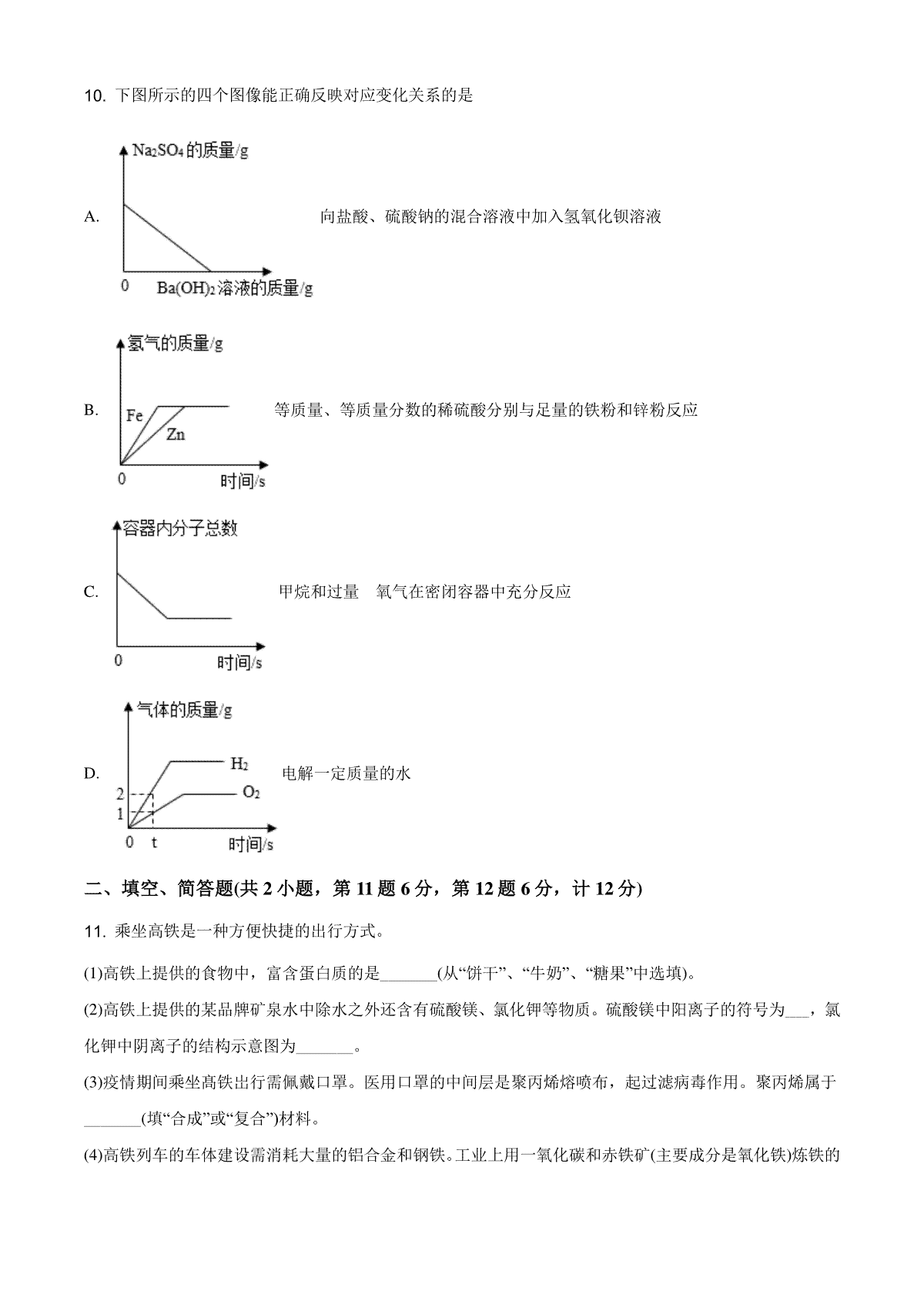 一、江苏省宿迁市2021年中考化学试题(原卷版)