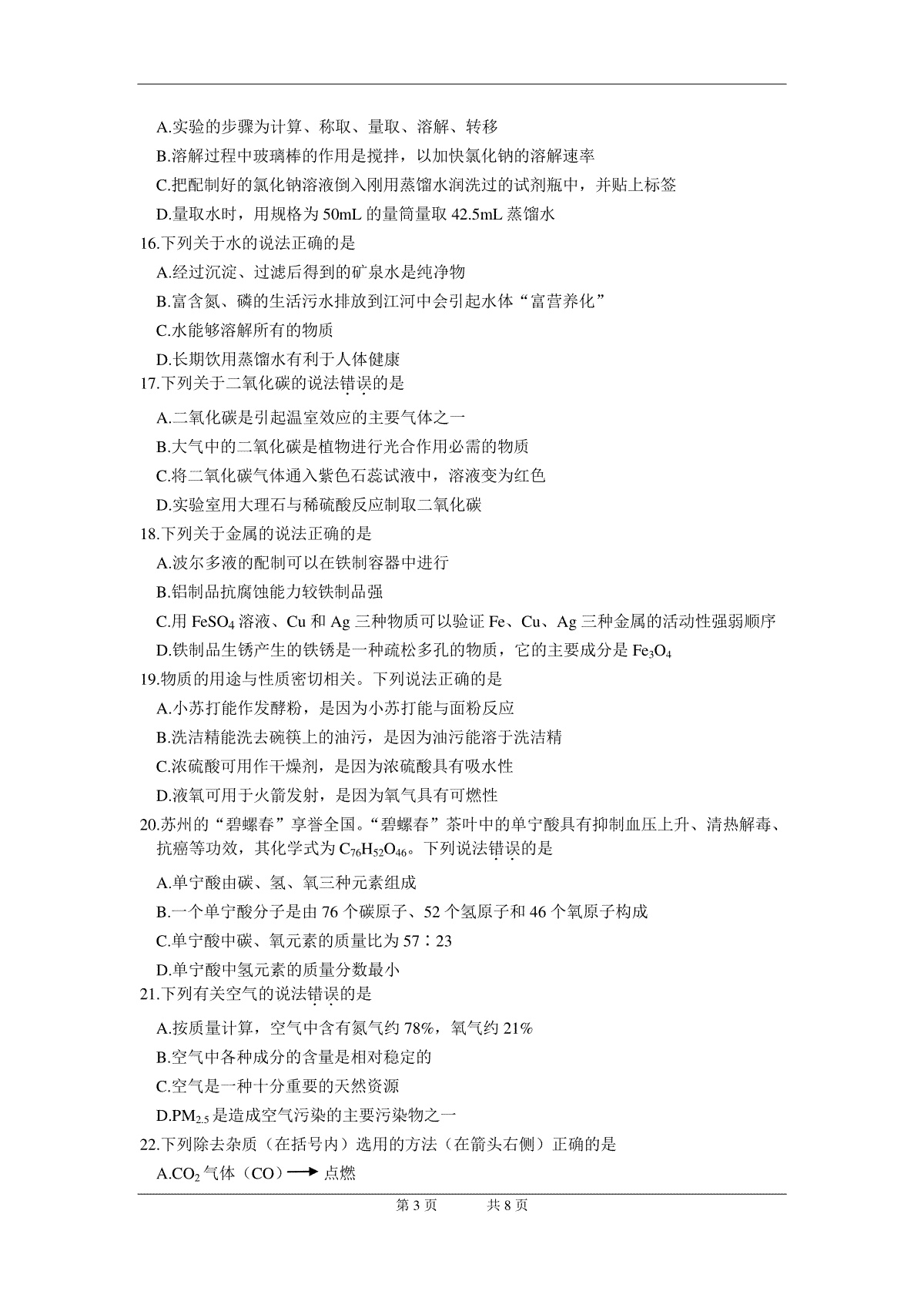 下载2015年苏州市中考化学试卷及答案PDF格式或doc