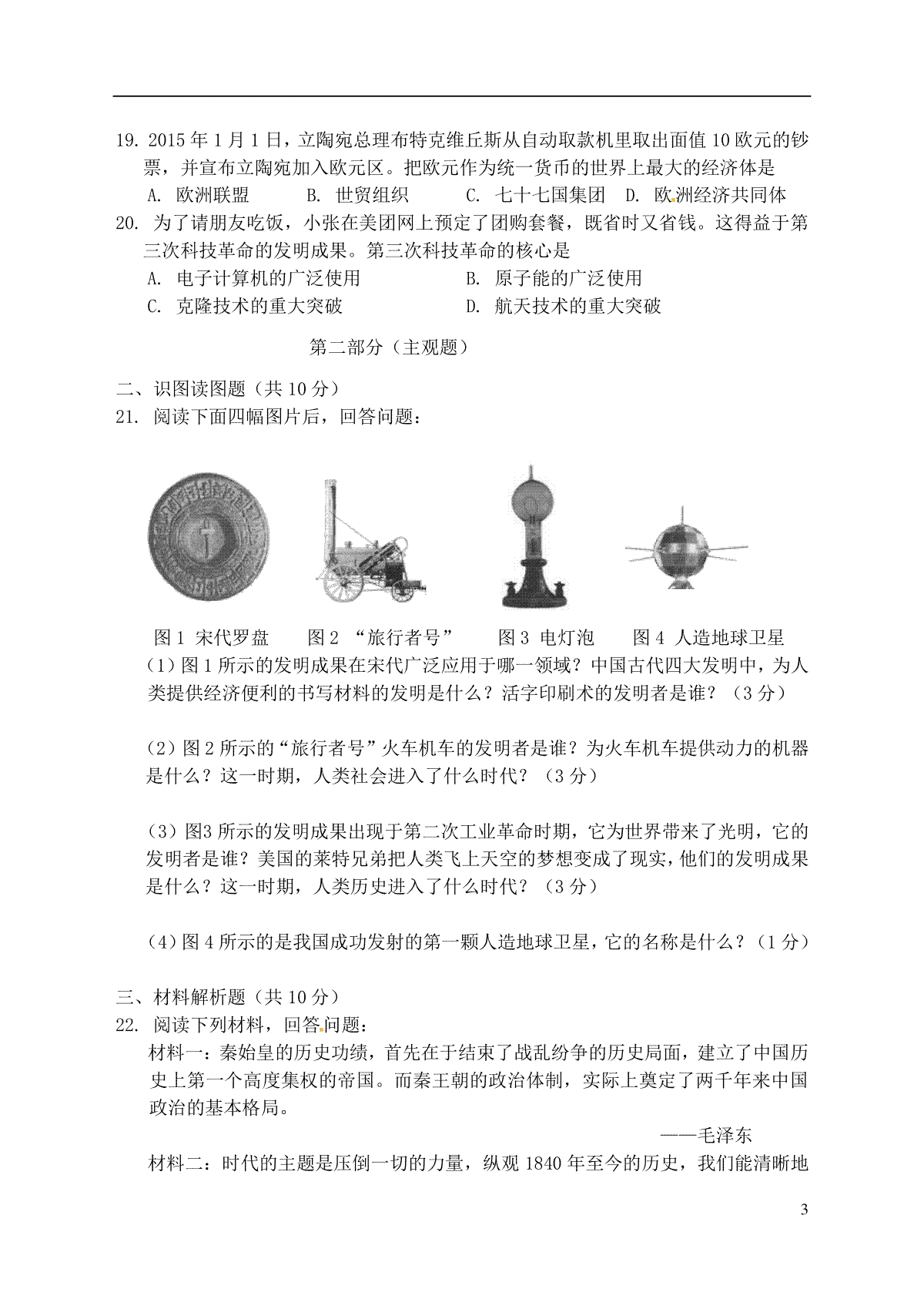 一、辽宁省营口市2015年中考历史真题试题(含答案)
