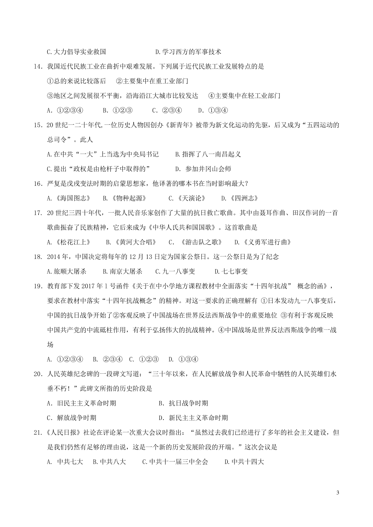 一、山东省泰安市2017年中考历史真题试题(毕业年级,含答案)