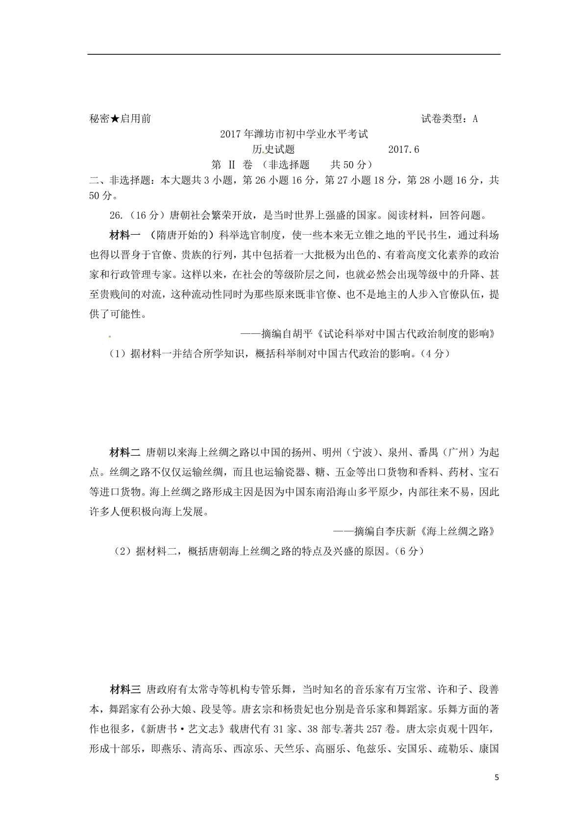 一、山东省潍坊市2017年中考历史真题试题(含答案)