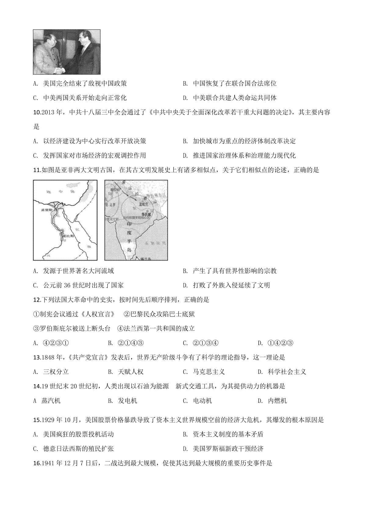 一、精品解析:四川省内江市2020年中考历史试题(原卷版)