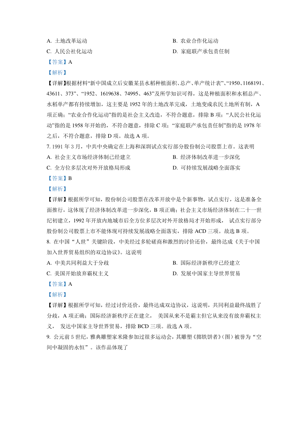 一、精品解析:2022年安徽省中考历史真题(解析版)