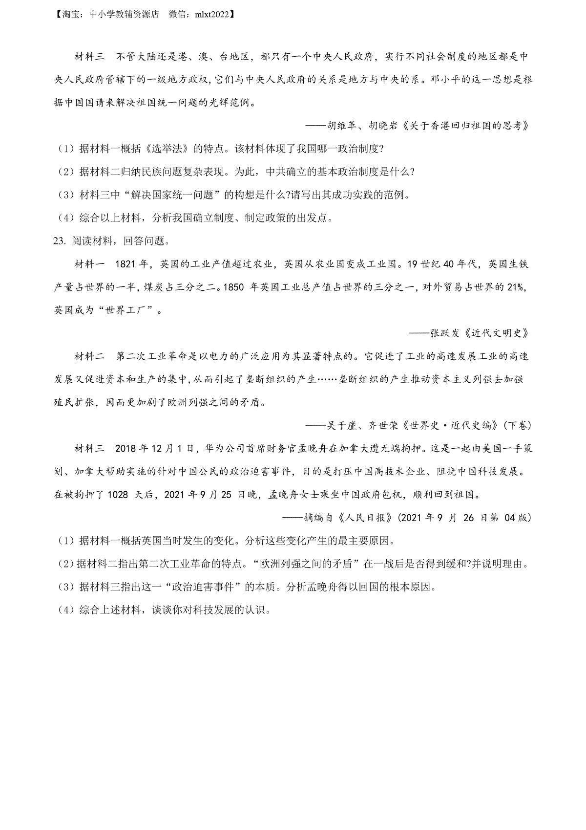 如果你想下载精品解析:2022年江苏省盐城市中考历史真题(原卷版)DOC或PDF版,请点击本文末链接!