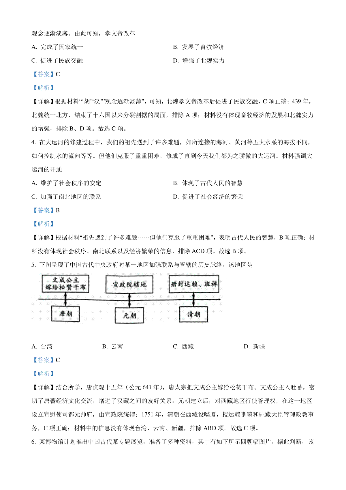 一、精品解析:2022年湖南省邵阳市中考历史真题(解析版)