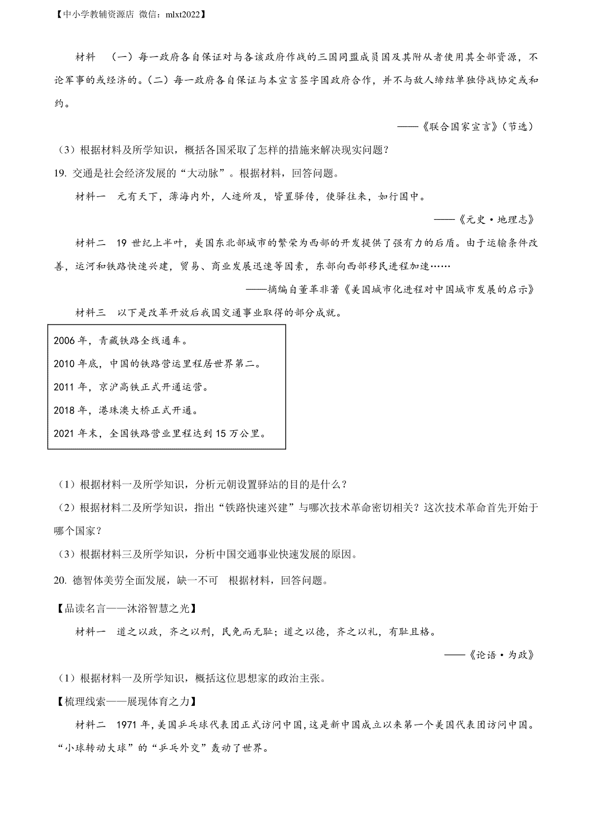 如果你想下载精品解析:2022年贵州省遵义市中考历史真题(原卷版)DOC或PDF版,请点击本文末链接!