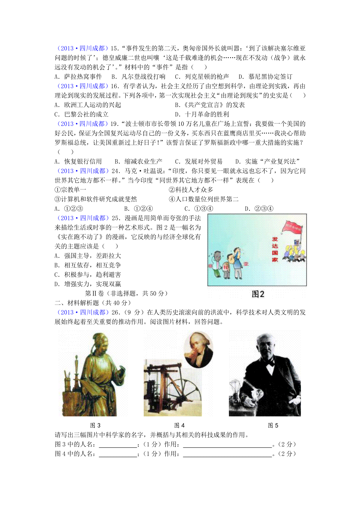 一、四川省成都市2013年中考历史试卷及答案