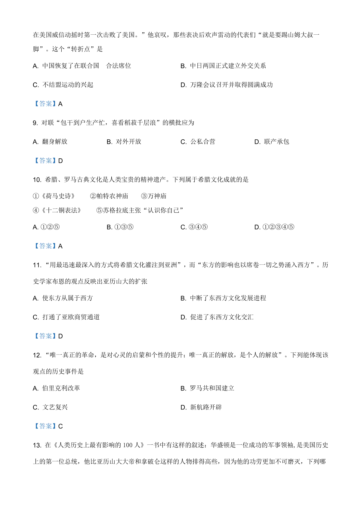 当前位置:首页 > 初中试卷 > 2021年山东省泰安市中考历史试题