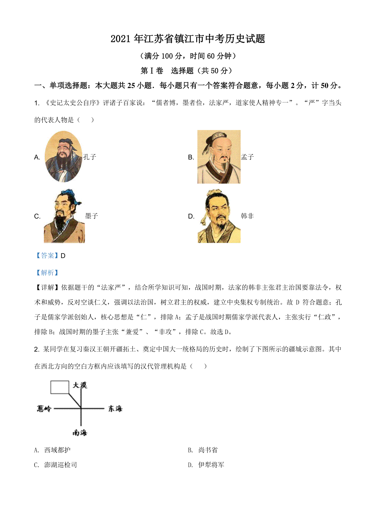 一、2021年江苏省镇江市中考历史试题(解析版)