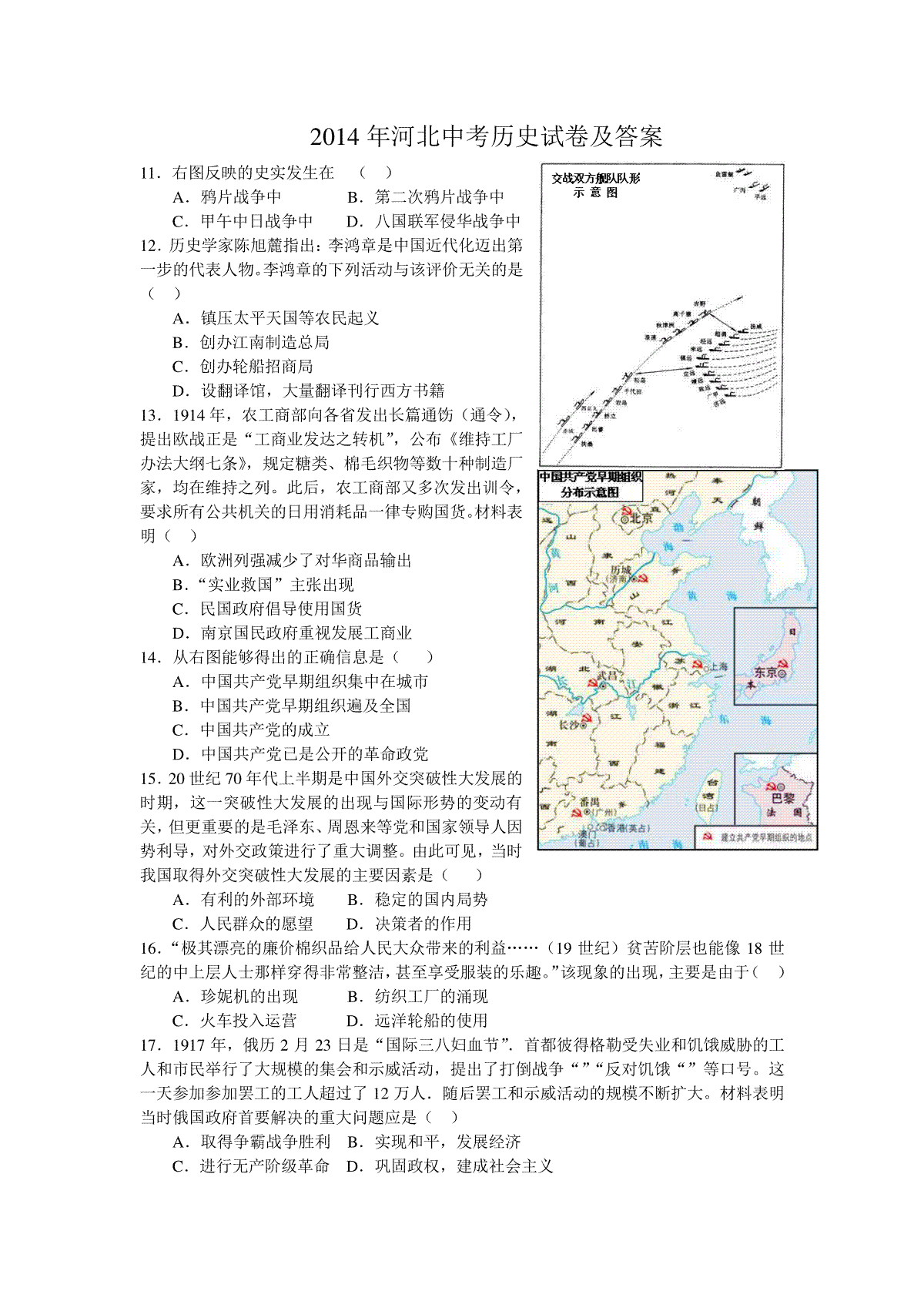 下载2014年河北省中考历史试题及答案PDF格式或doc