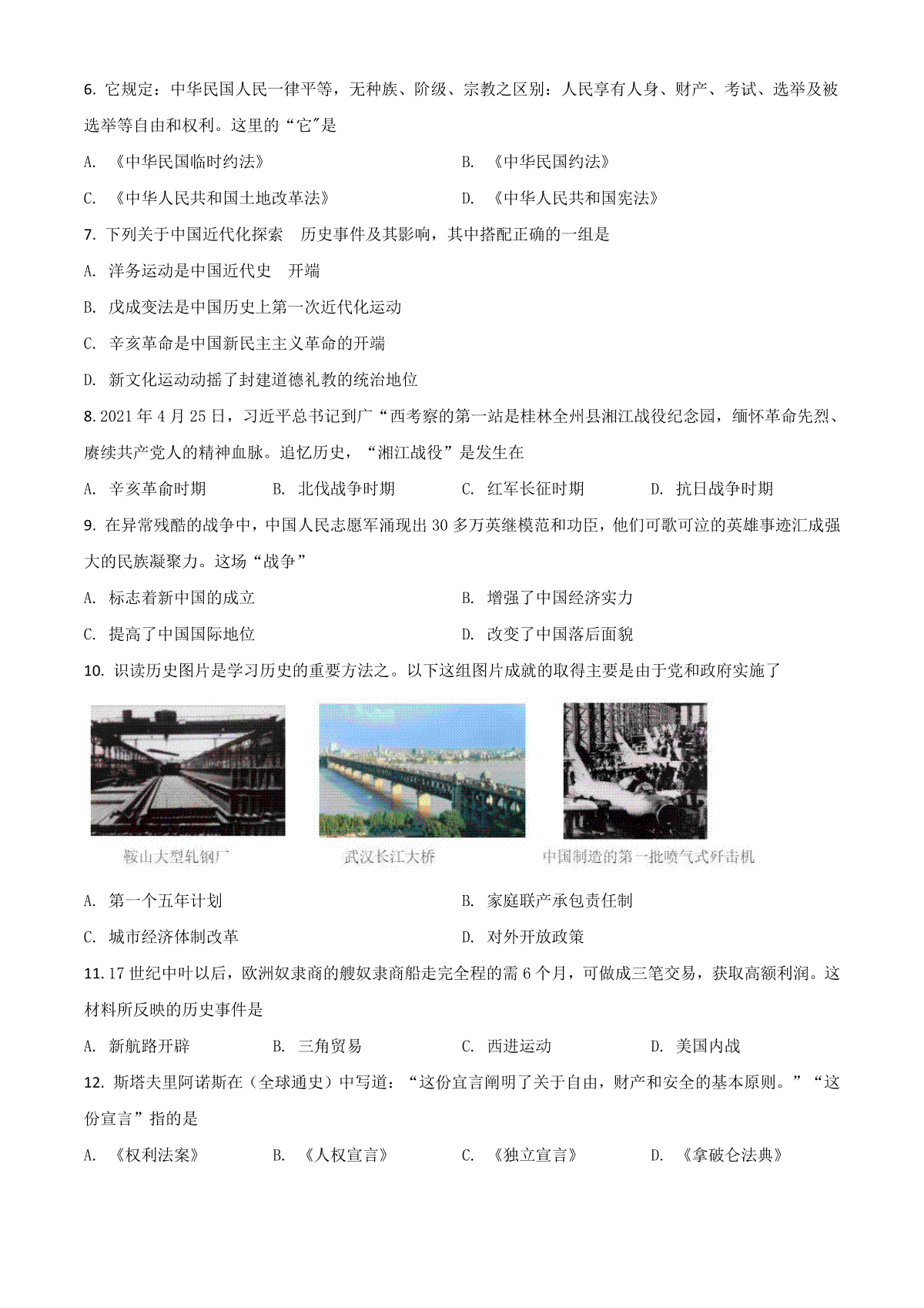 广西河池市2021年中考历史试题(原卷版)于近期开考,本次考试对考生对知识的掌握参考价值大,为了方便大家复习掌握错题!小编在下文为大家准备了广西河池市2021年中考历史试题(原卷版)试卷及答案解析详情,仅供考生参考。