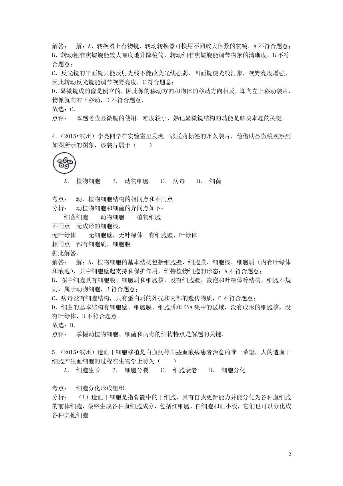 一、山东省滨州市2015年中考生物真题试题(含解析)